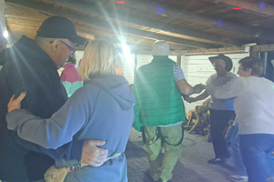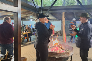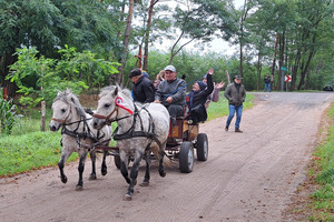 Oczywiście, jak Hubertus, to także wspólna biesiada, z ogniskiem, zabawą taneczną i swojskim poczęstunkiem. Było więc ognisko z kiełbaskami, bigos, grochówka z kotła, dziczyzna, pajda chleba ze smalcem oraz domowe ciasta. Wszystko to w przyjaznej i rodzinnej atmosferze.