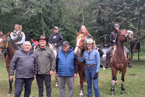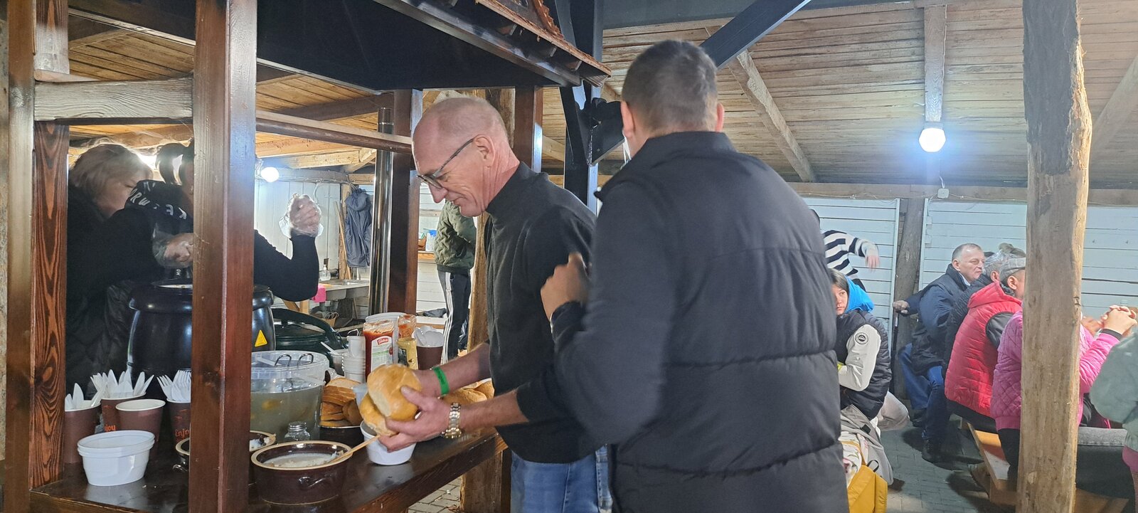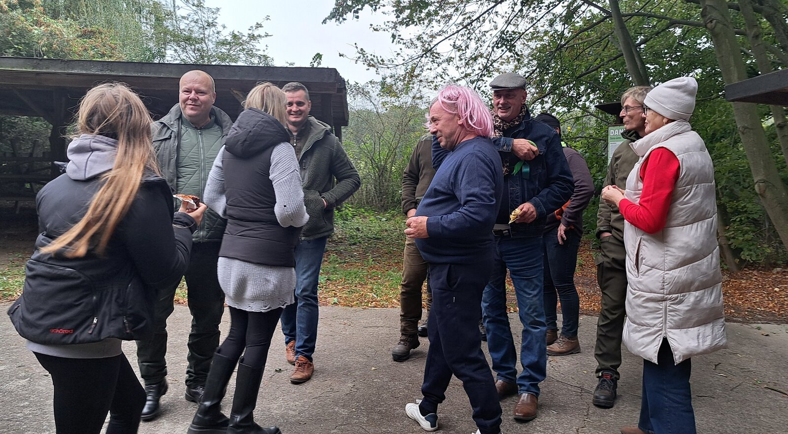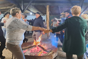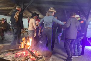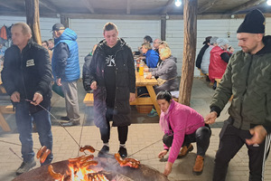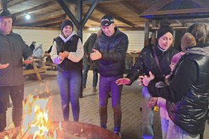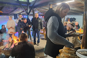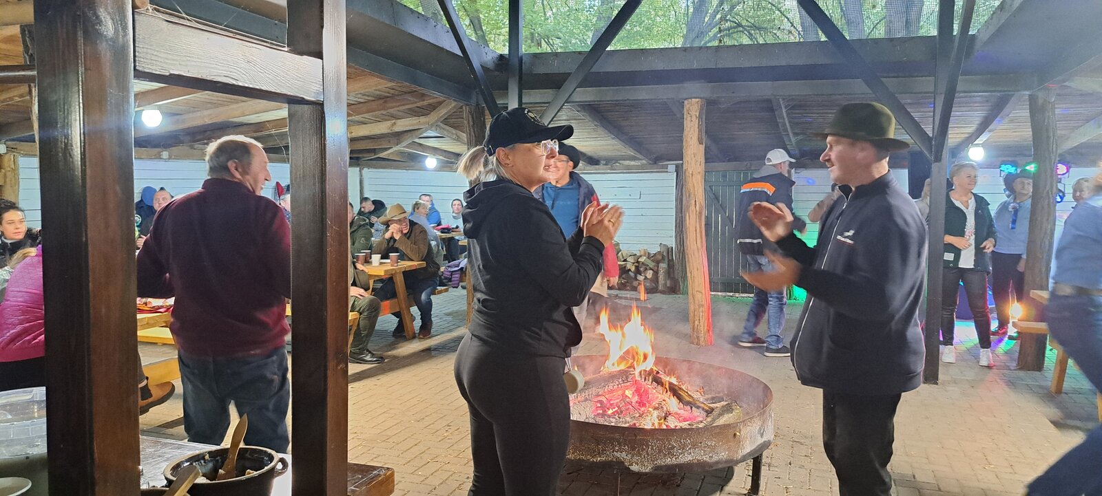 Oczywiście, jak Hubertus, to także wspólna biesiada, z ogniskiem, zabawą taneczną i swojskim poczęstunkiem. Było więc ognisko z kiełbaskami, bigos, grochówka z kotła, dziczyzna, pajda chleba ze smalcem oraz domowe ciasta. Wszystko to w przyjaznej i rodzinnej atmosferze.