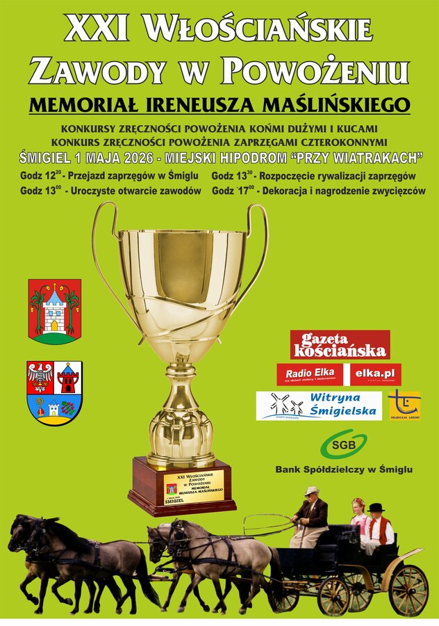 1 maja na śmigielskim hipodromie odbędzie się XXI edycja Włościańskich Zawodów w Powożeniu Zaprzęgami-wydarzenia, które na stałe wpisało się w lokalną tradycję i przyciąga miłośników koni oraz powożenia.
